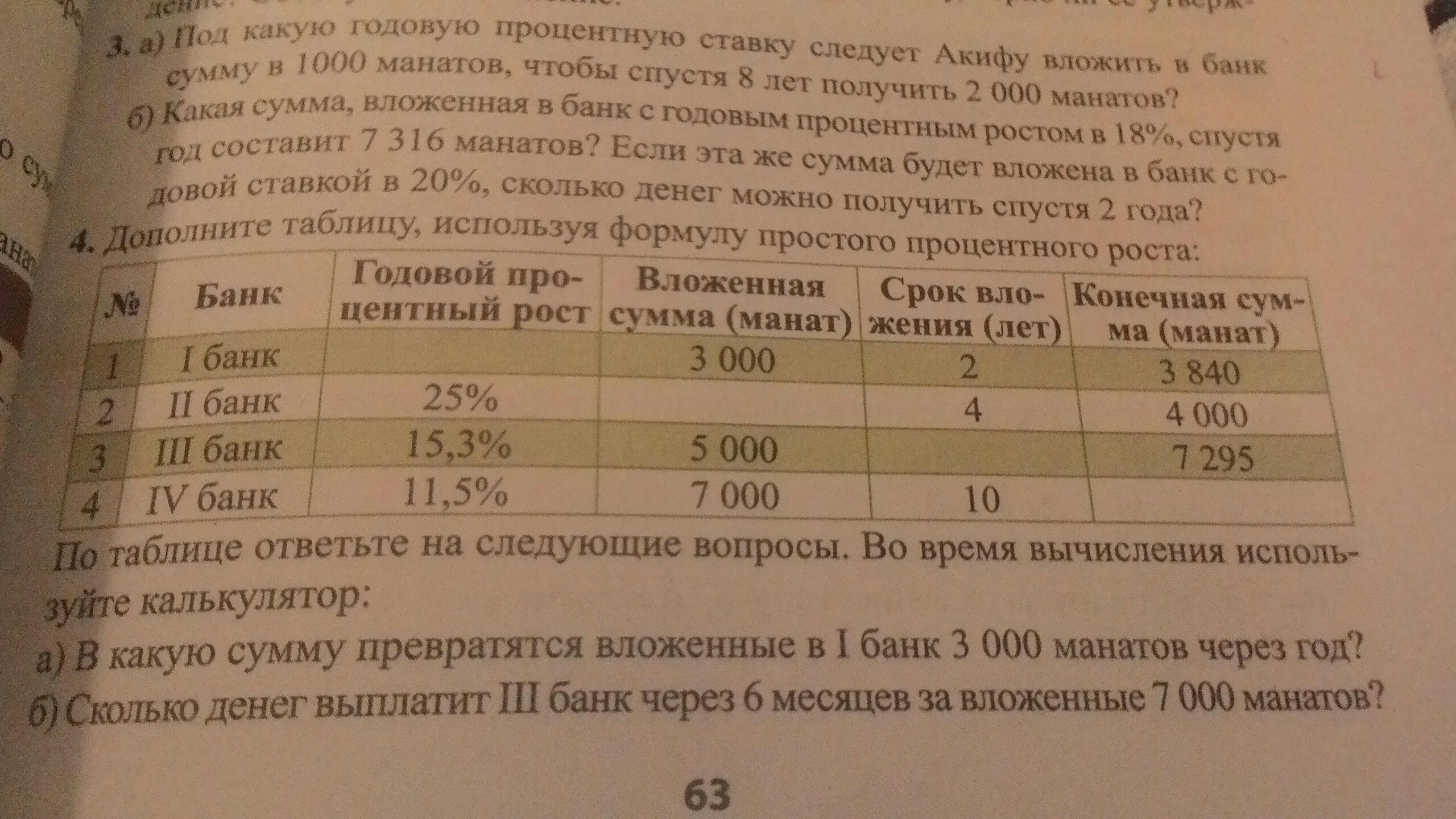 B.Сколько денег выплатил 3 банк через 6 месяцев за вложенные 7.000?