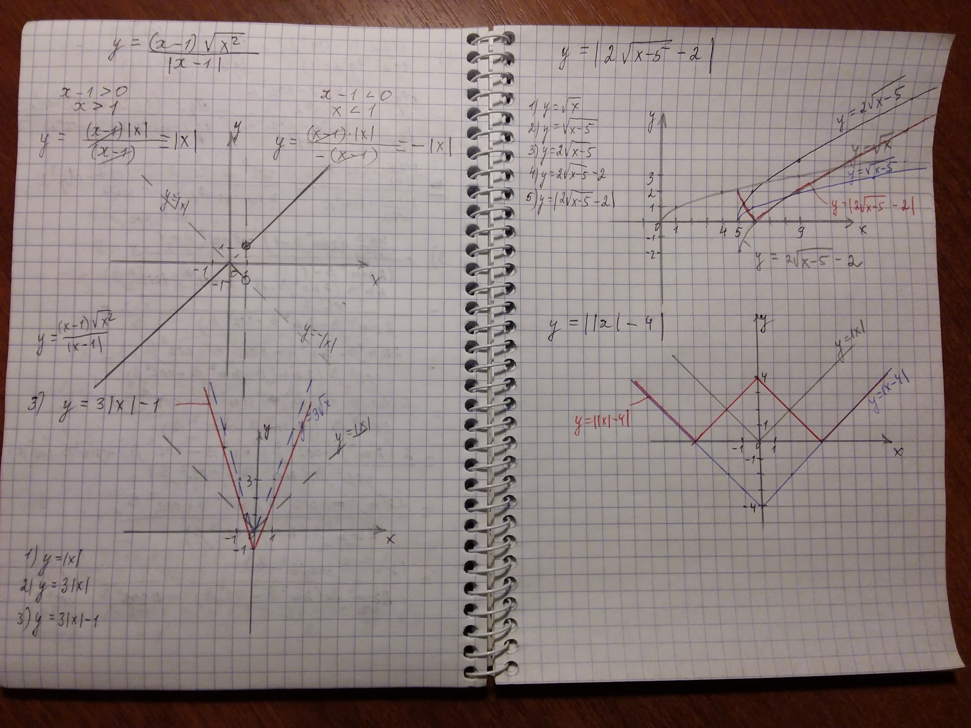 таблицы делать не буду для у=|х|, у=√х,имеется в виду что Вы умеете строить эти графики.