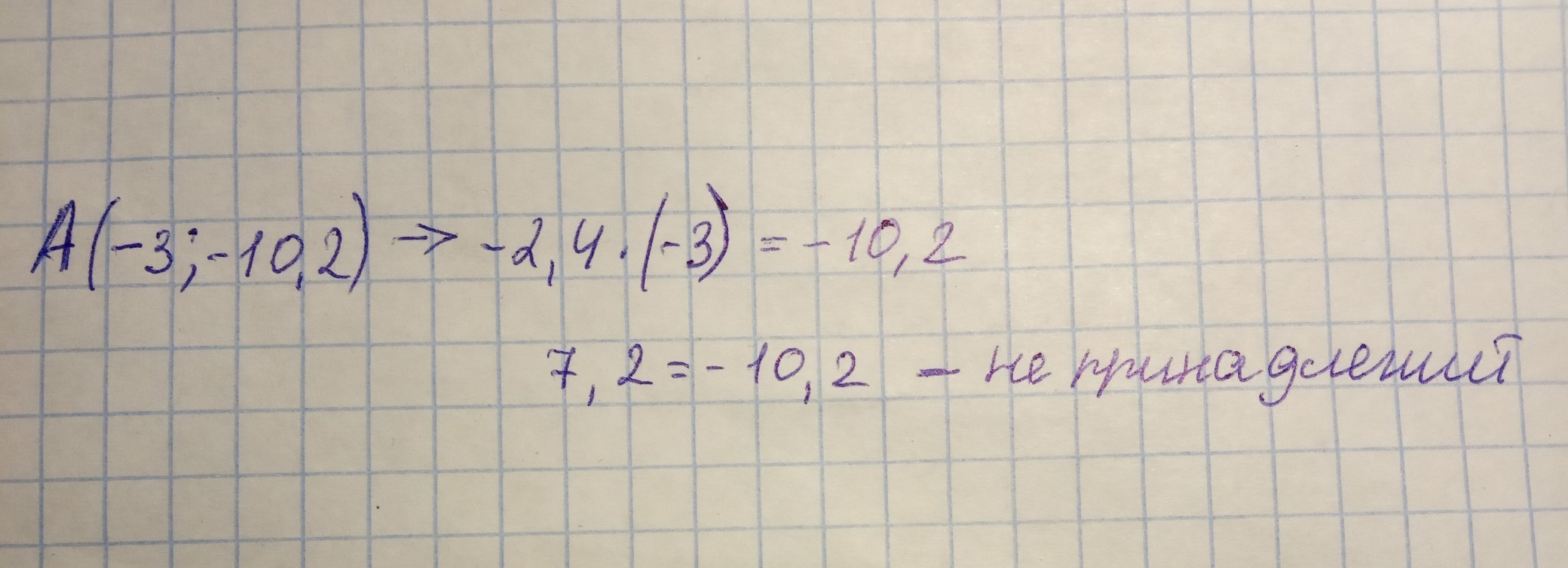 Не принадлежит. Просто подставляем значения А и проверяем, если они приравнялись, то точка принадлежит. В данном случае точка не принадлежит