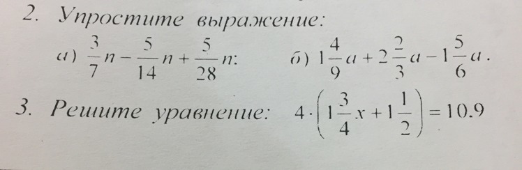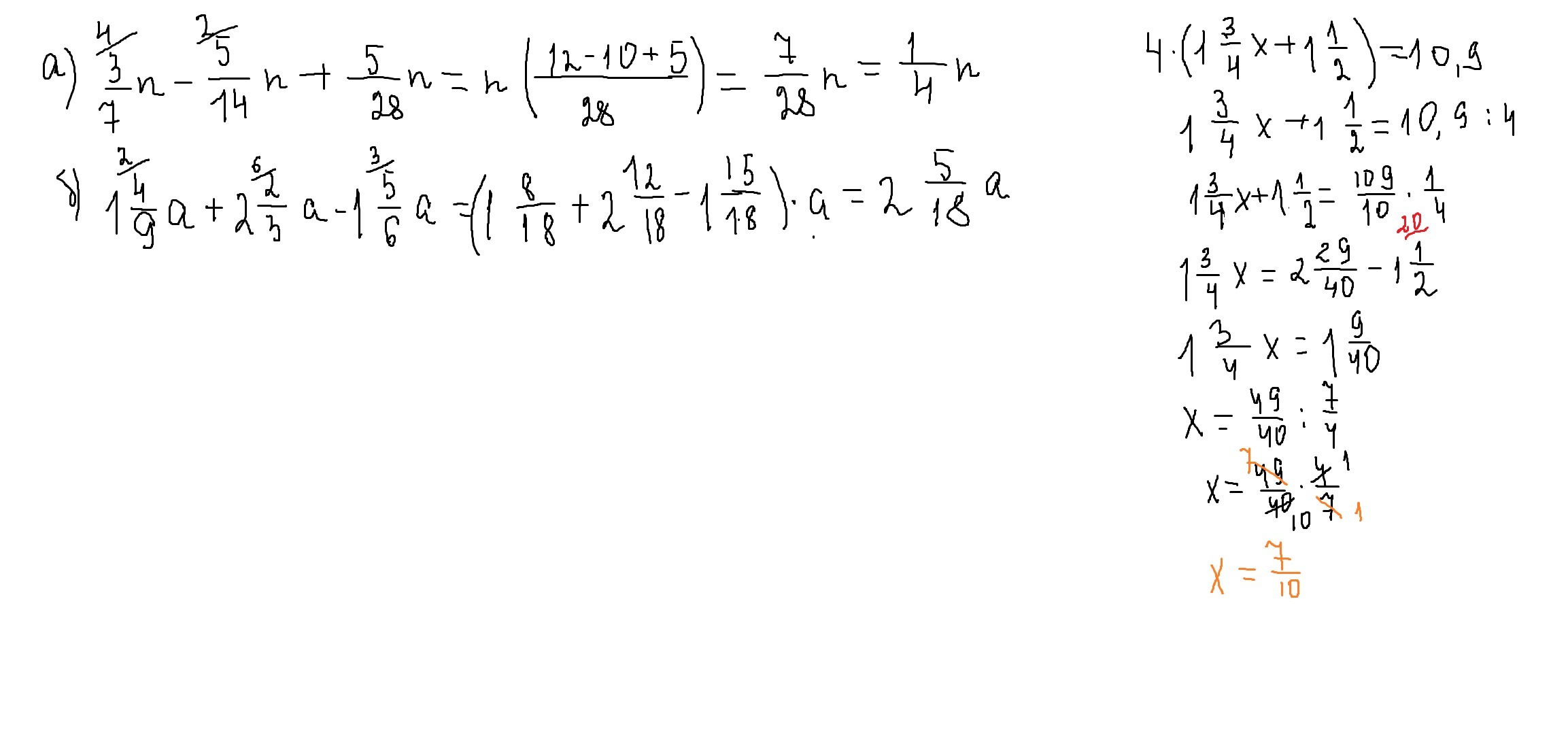 a) 3/7n-5/24n+5/28n= 3n/7-5n/14+5n/28= (3n*4-5n*2+5n)/28[общая дробь]=(12n-10n+5n)/28=n/4