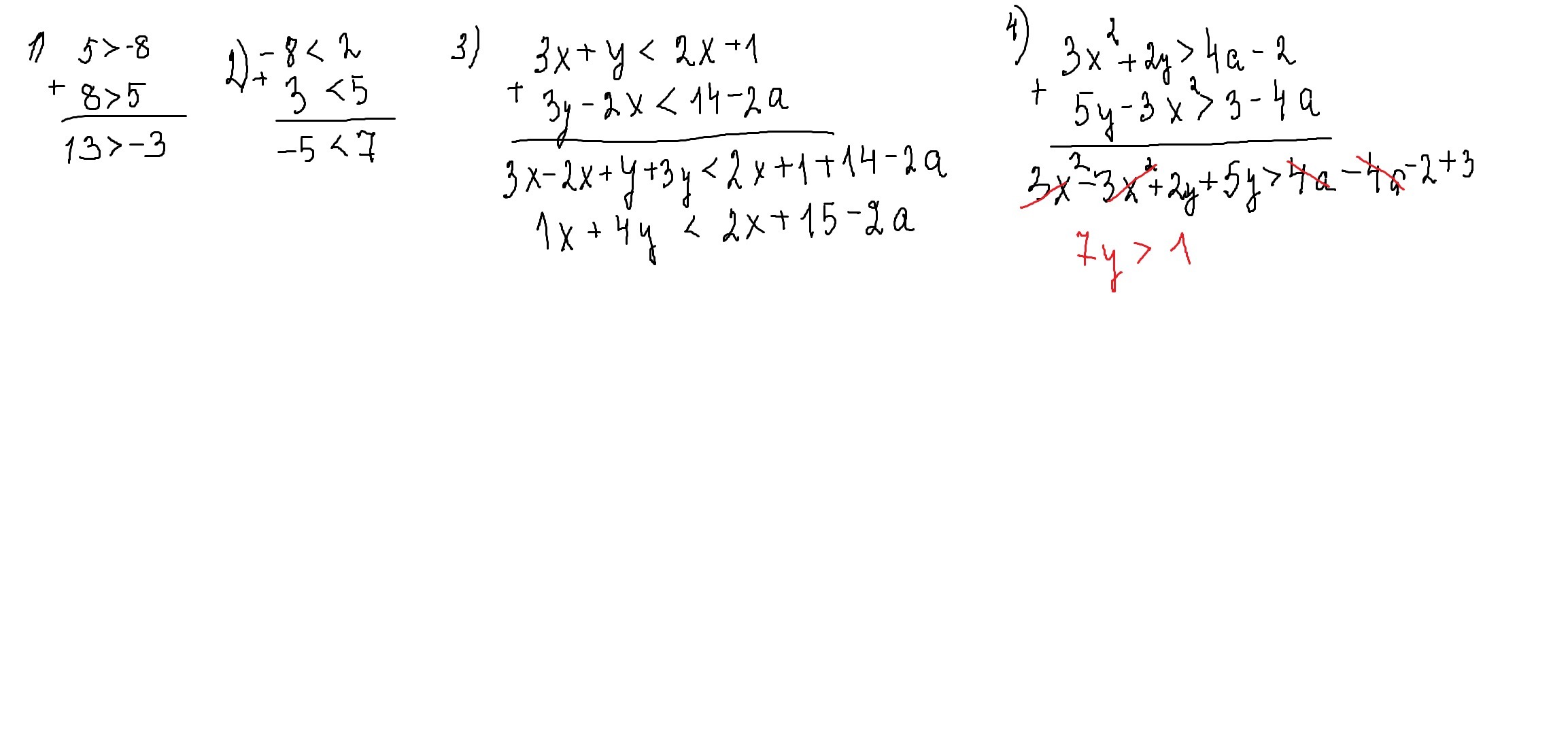 3x^2+2y-4a+2+5y-3x^2-3+4a>0; 3x^2-3x^2-4a+4a+2y+5y+2-3>0; 7y-1>0