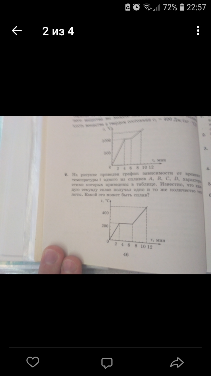 на рисунке приведён график зависимости от времени температуры одного из сплавов a b c dхарактеристики которых приведегы в таблице.известно что каждую секунду сплав получал одно и то же колтчество теплоты.какой это может быть сплав.