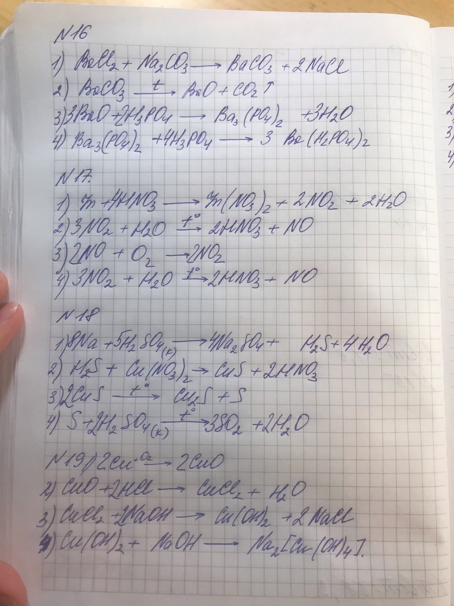 1)Смешали растворы хлорида бария и карбоната натрия. Выпавший осадок прокалили, а к твердому остатку добавили фосфорную кислоту. Полученное твердое вещество отфильтровали и добавили избыток фосфорной кислоты. Напишите уравнения четырех описанных реакций.