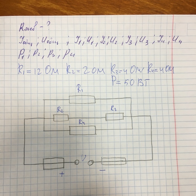 U₄=Uобщ=10 В, I₄=U₄/R₄=10/4=5/2 A, P₄=U₄*I₄=10*5/2= 25 Вт