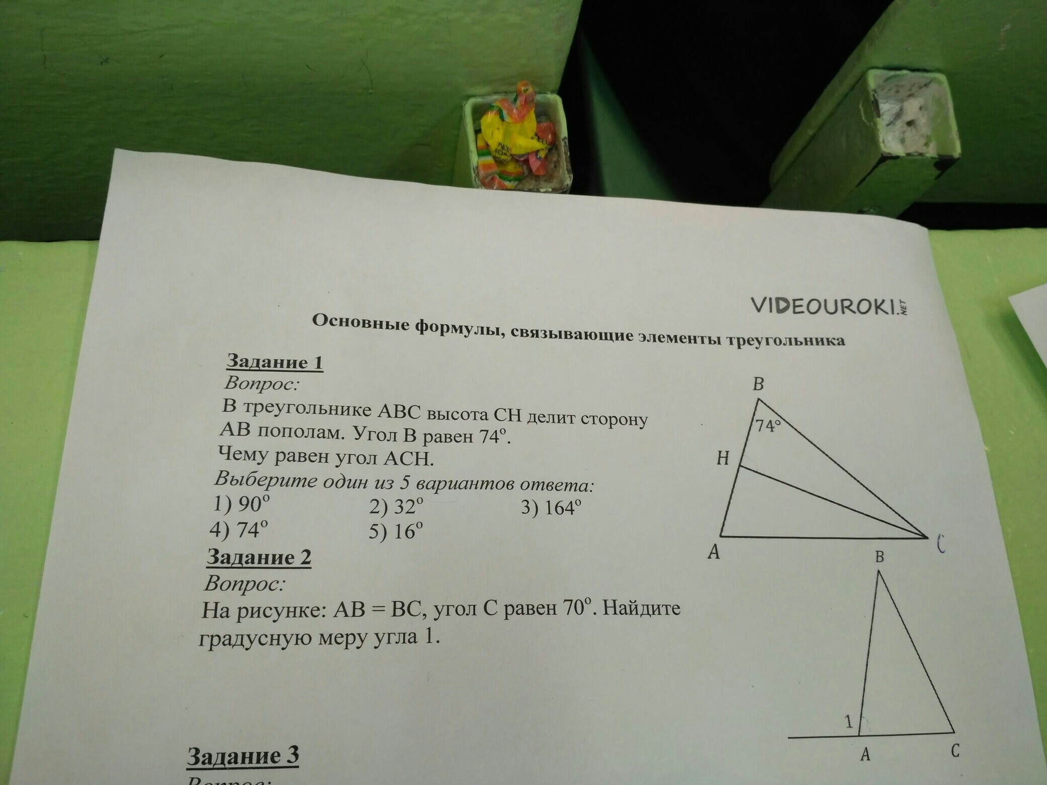 Если высота делит треугольник пополам, то и противоположная сторона имеет такой же угол