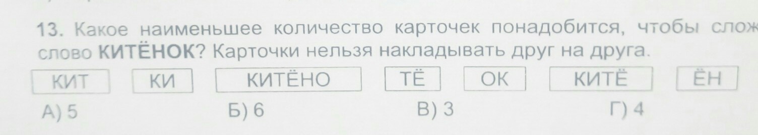 Какое наименьшее количество карточек чтобы сложить слово китенок карточки? Нельзя накладывать друг на друга!