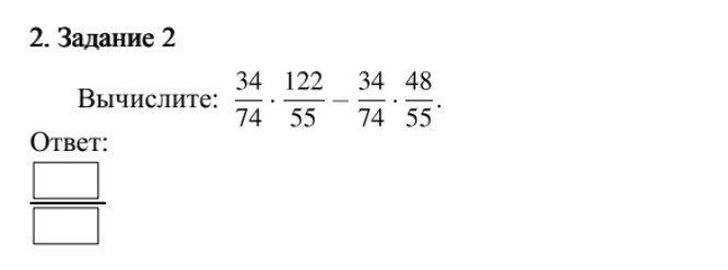 34/74 × 122/55 - 34/74 × 48/55 = 34/74 × (122/55 - 48/55) =