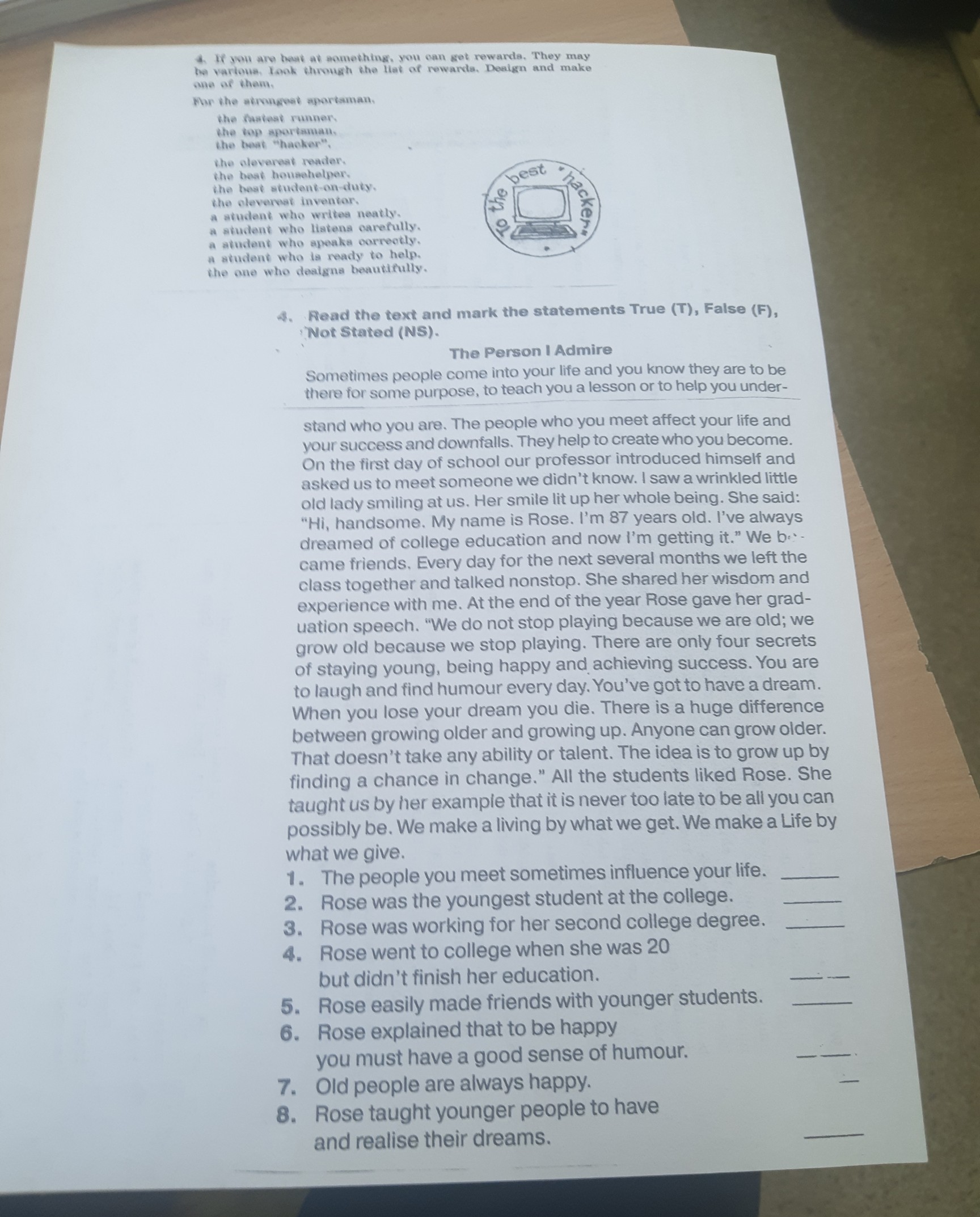 1)True 2)False 3)NS 4)NS 5)True 6)True 7)NS 8)True