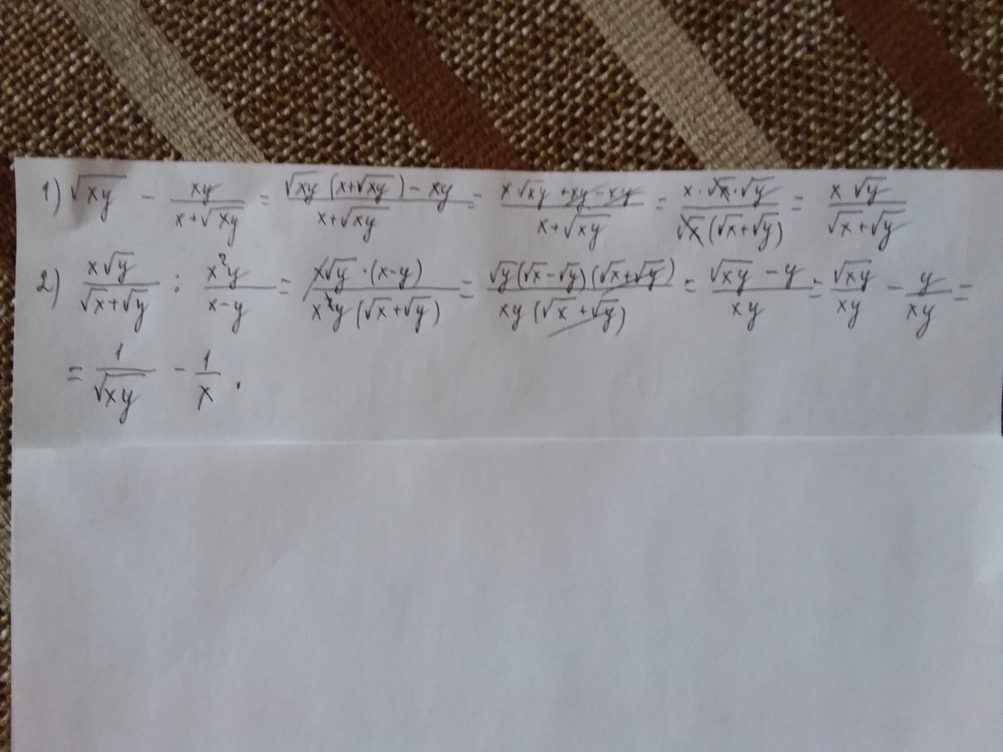 спасибо!)) а можете, пожалуйста, объяснить, как получить ответ из √ху/ху-у/ху в последний строчке? там умножить на что-то надо?