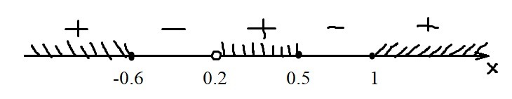 Решим неравенство методом интервалов (см. рис.). Получим, что