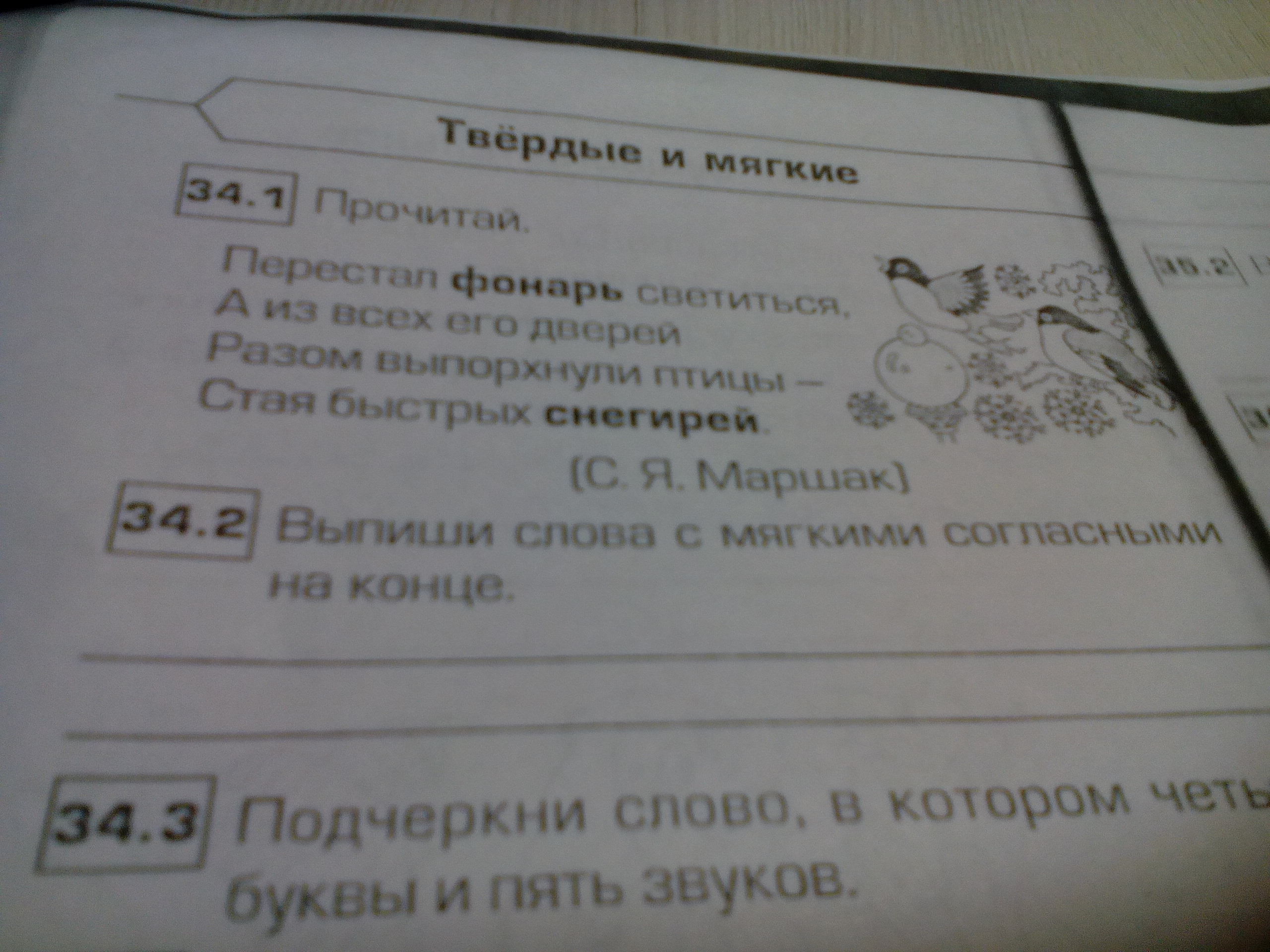 34.2 - фонарь, светиться, дверей, выпорхнули, снегирей.