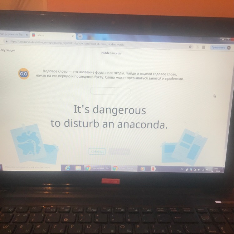 Banana от последней буквы слова disturb до третьей в слове anaconda