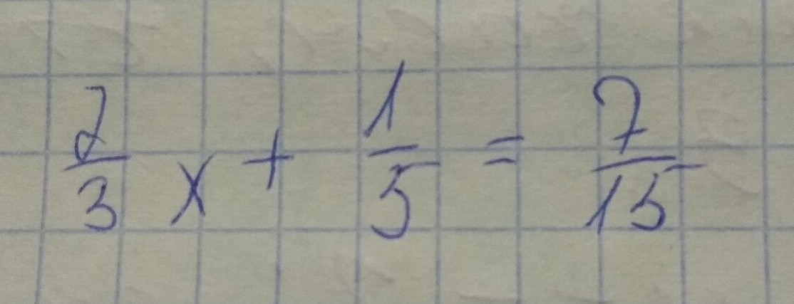 1) 2/3x умножаем на 5, а 1/5 на 3, чтобы получить общий знаменатель - 15, получаем - 10/15x + 3/15 = 7/15.