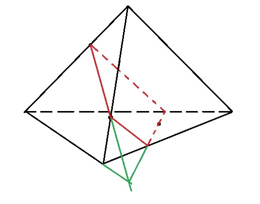 Красным цветом обозначены границы сечения, а зелёным - вспомогательные линии.