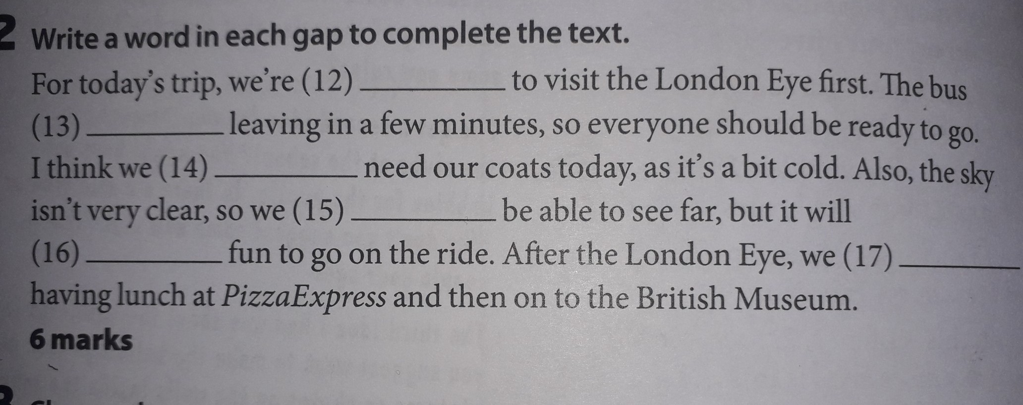 (12) going, (13) is, (14) will, (15) won't, (16) be, (17) are.