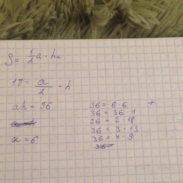 Площадь треугольника равна 18 см^2. Каким должно быть основание, что бы сумма основания и высоты была наименьшей?