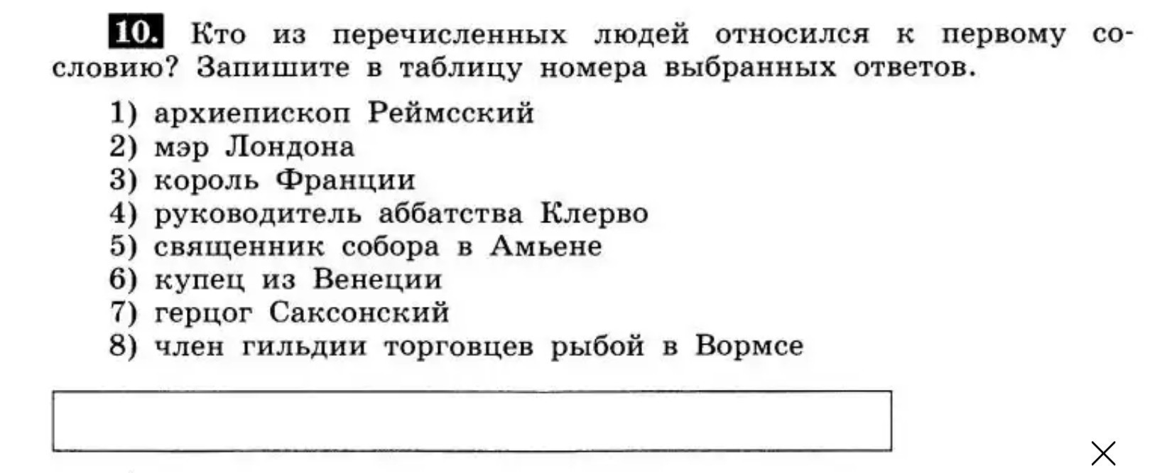 Первое сословие - это феодалы - боярство , дворянство , духовенство , зная это определение делаем вывод , ответ : 1 . 3 . 5 7 - ответы смешно расставлены , возможно кого-то забыла , ща подумаю еще