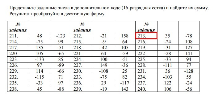 Если число положительное, оно в дополнительном коде имеет такой же вид, как в прямом. Поэтому 35₁₀ = 100011₂ на 16-битной сетке будет записано как