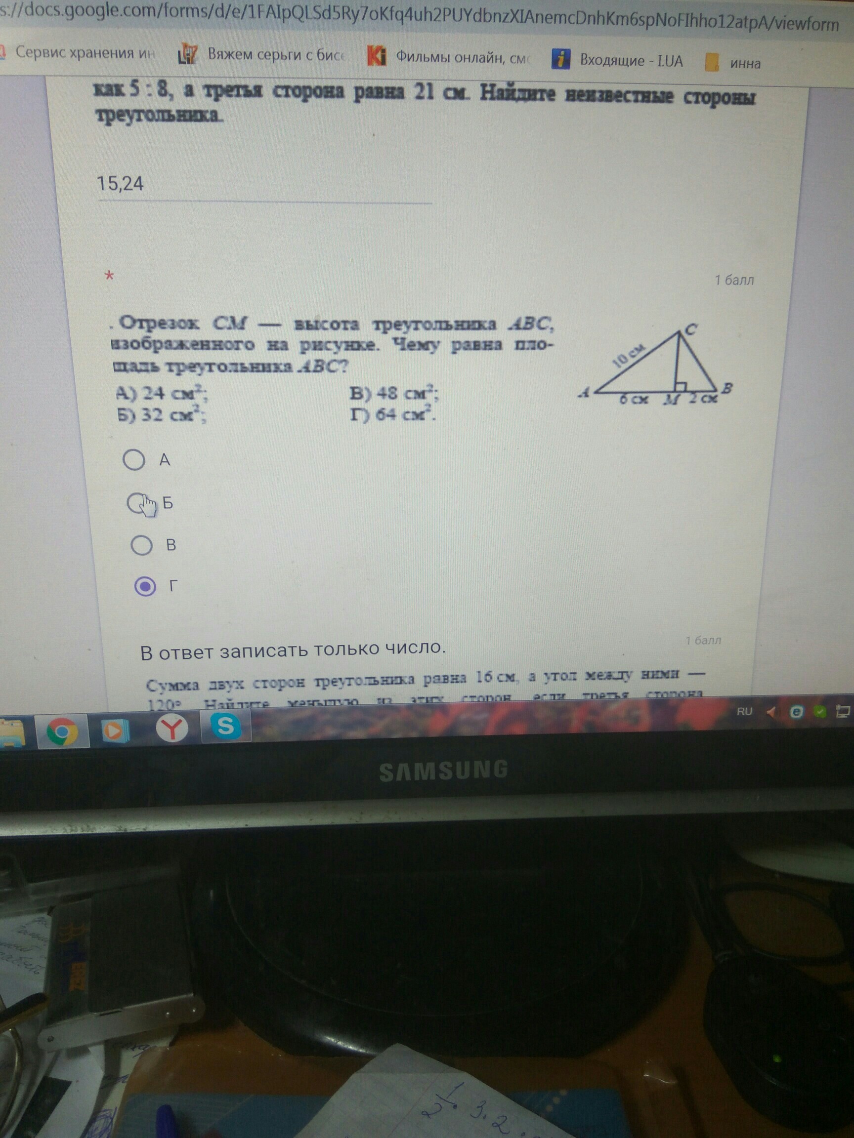 По теореме Пифагора: СМ^2=АС^2+АМ^2=64