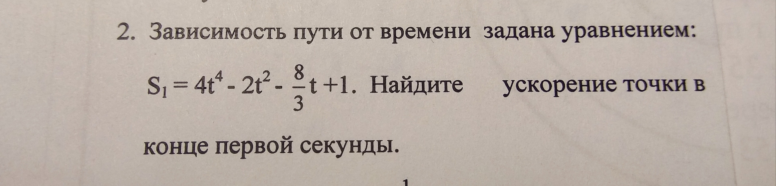 Зависимость пути от времени задана уравнением: S1=4t^4-2t^2-8/3*t+1. Найдите ускорение точки в конце первой секунды.