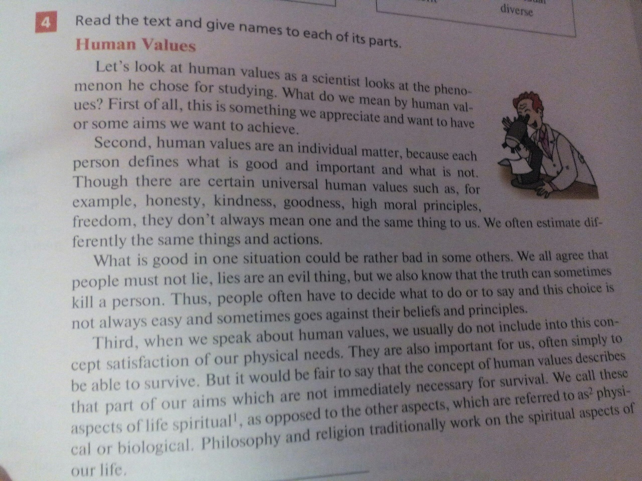 1) Human values in the text are described as something purely individual for each person, and I agree with this opinion.