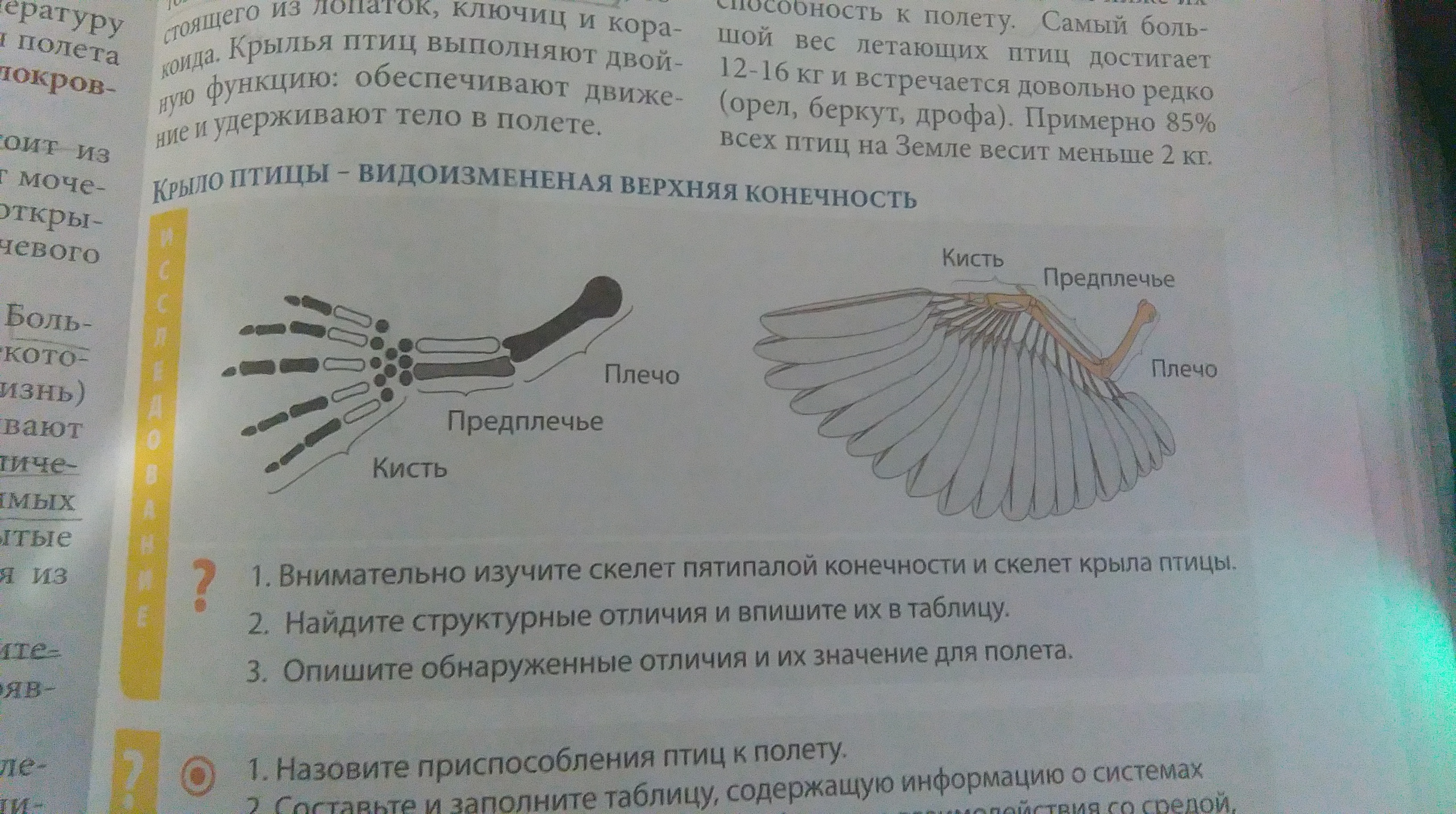 Приспособления птиц к полету: наличие крыльев, нет мочевого пузыря, зубов, пух,двойное дыхание, повышен обмен веществ и др.