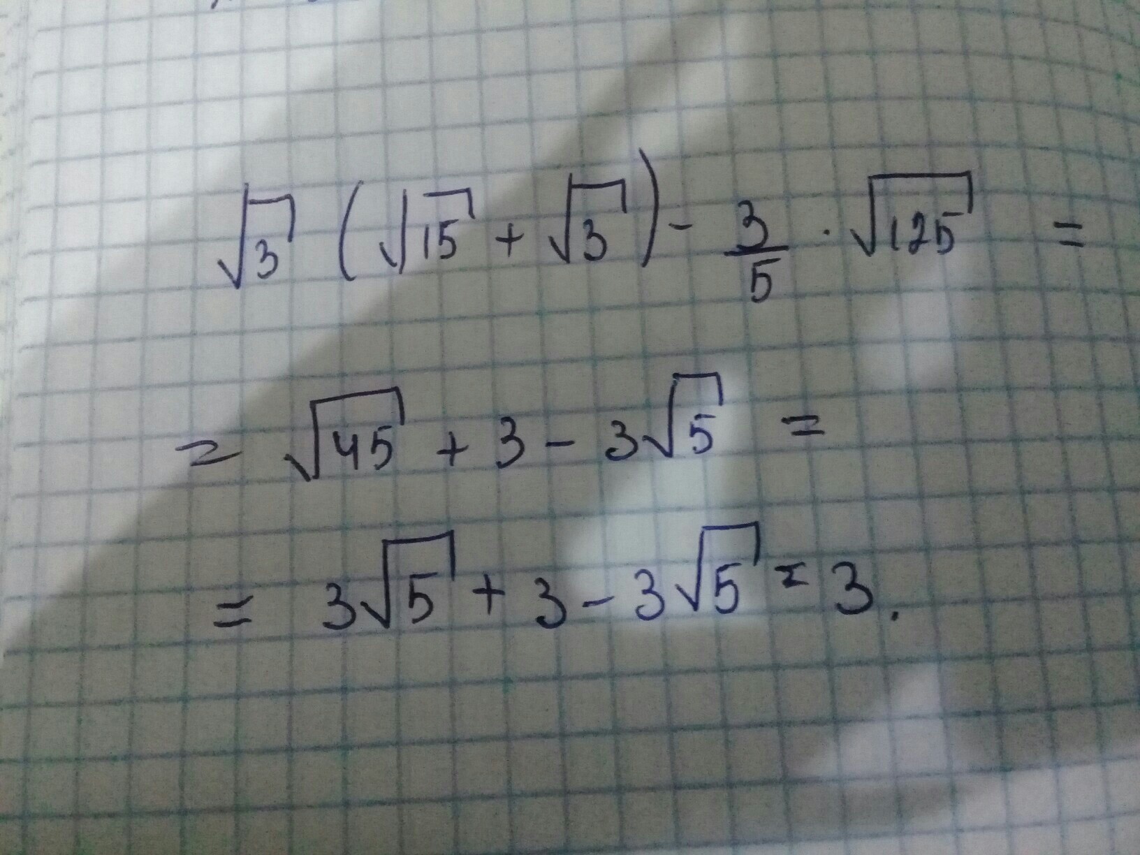 1) √3·(√15+√3)-3/5×√125 = √45+3-3/5×√125 = 3√5+3-3/5×5√5 = 3