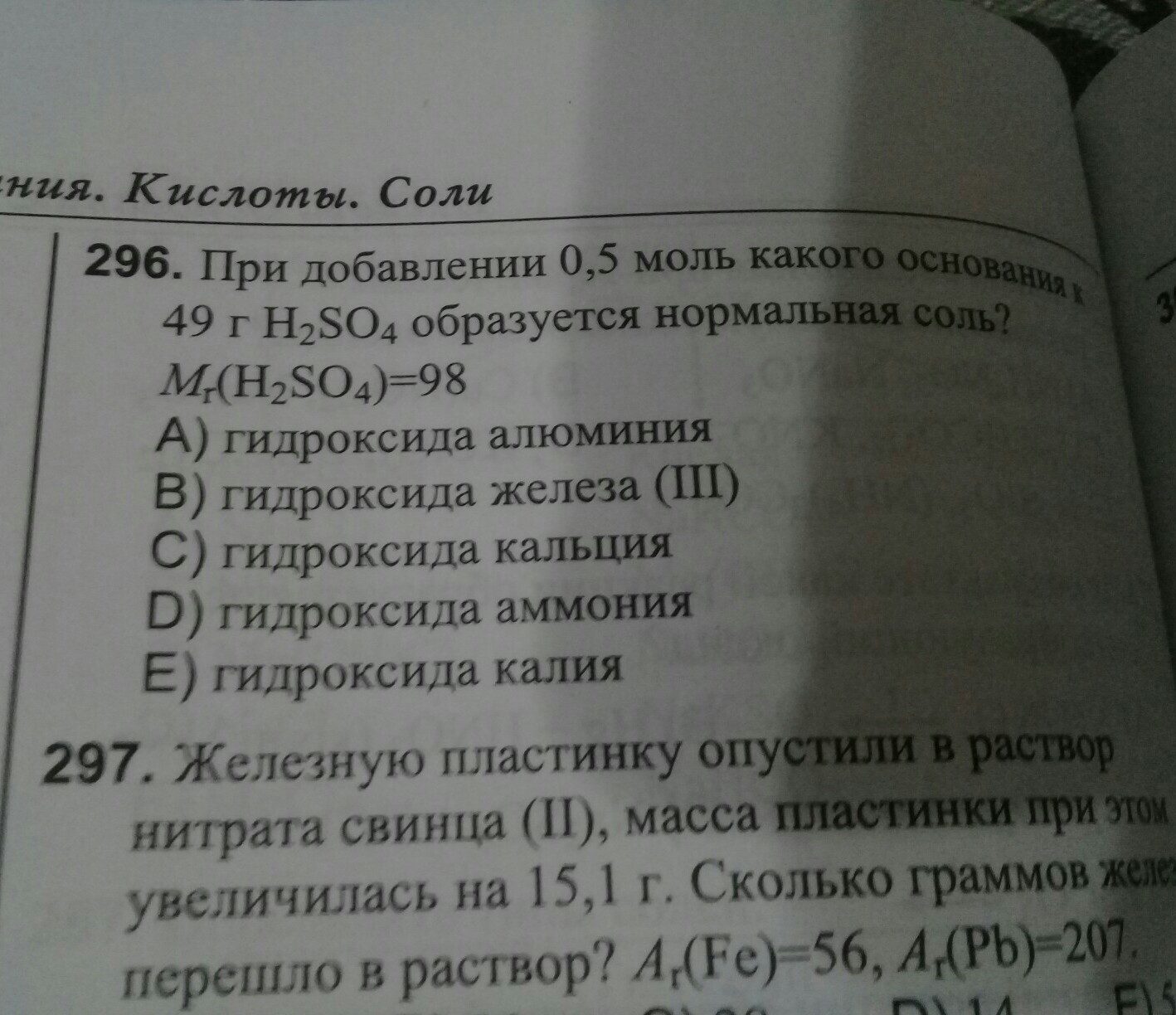 Ответ: С. Т.к. 49 г (H2SO4) = это 0,5 моль (n=m/М), т.е. количество кислоты, вступившей в реакцию, должно быть равно количеству основания. Это возможно только в реакции