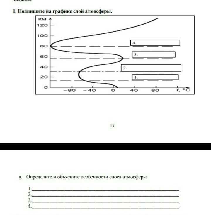 1)Тропосфера (свойственно понижение температуры, действует понятие - вертикальный градиент температуры)
