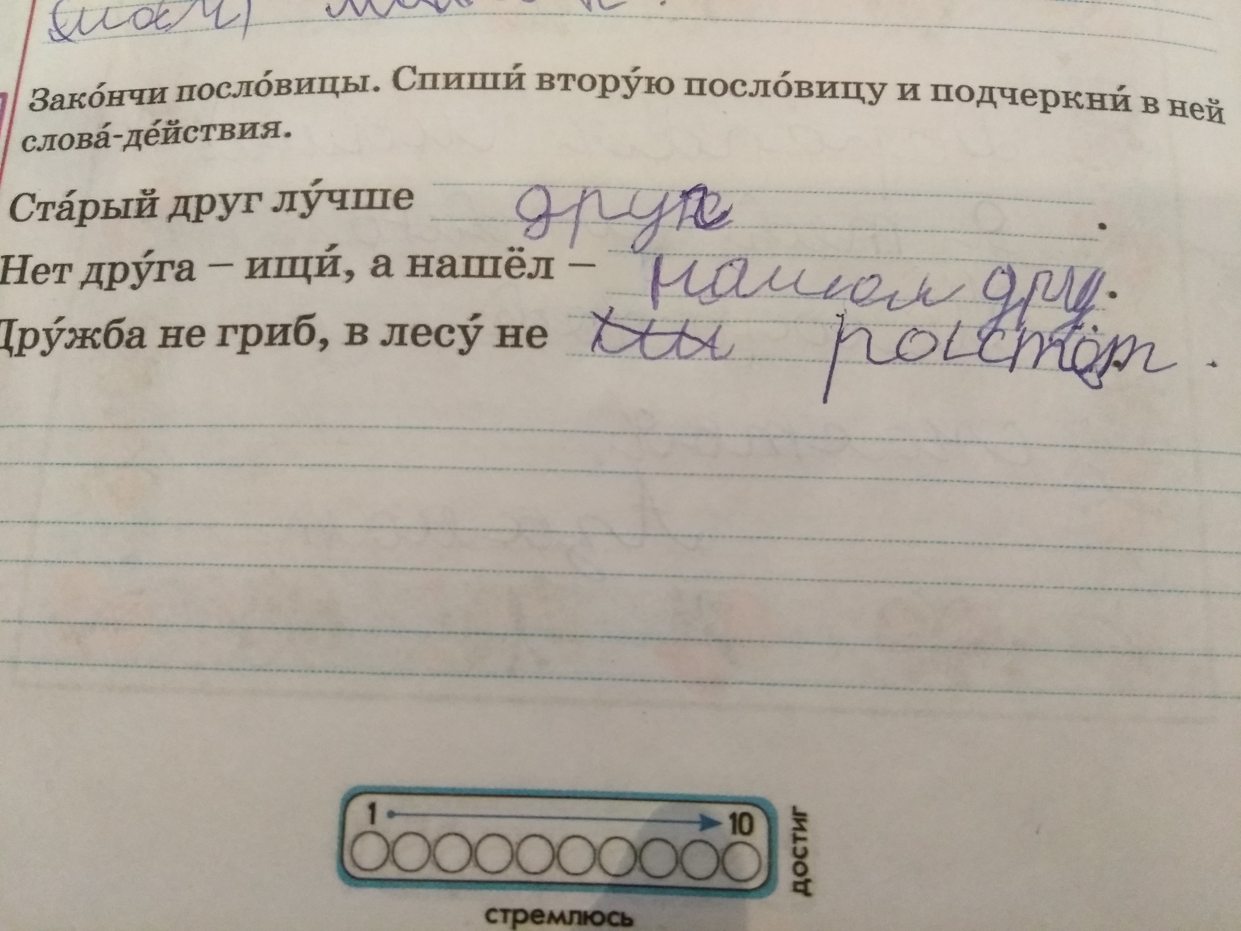 Закончи пословицы.Спиши втарую пословицу и почеркни в ней слова-действия.