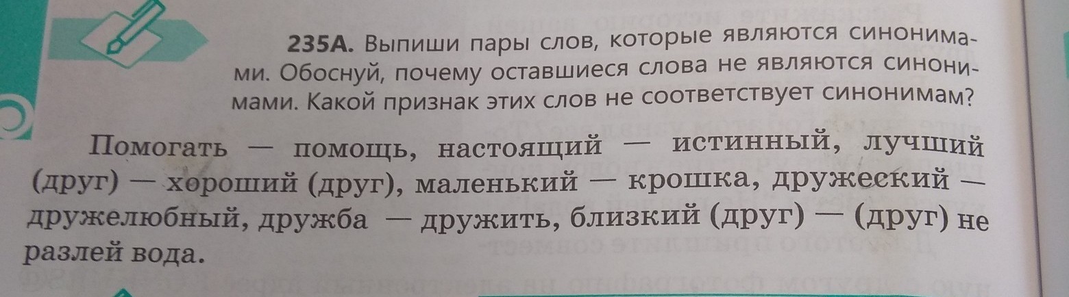 Синонимы: Настоящий-истинный, маленький-крошка, близкий (друг) -(друг) не разлей вода, лучший (друг) -хороший (друг)