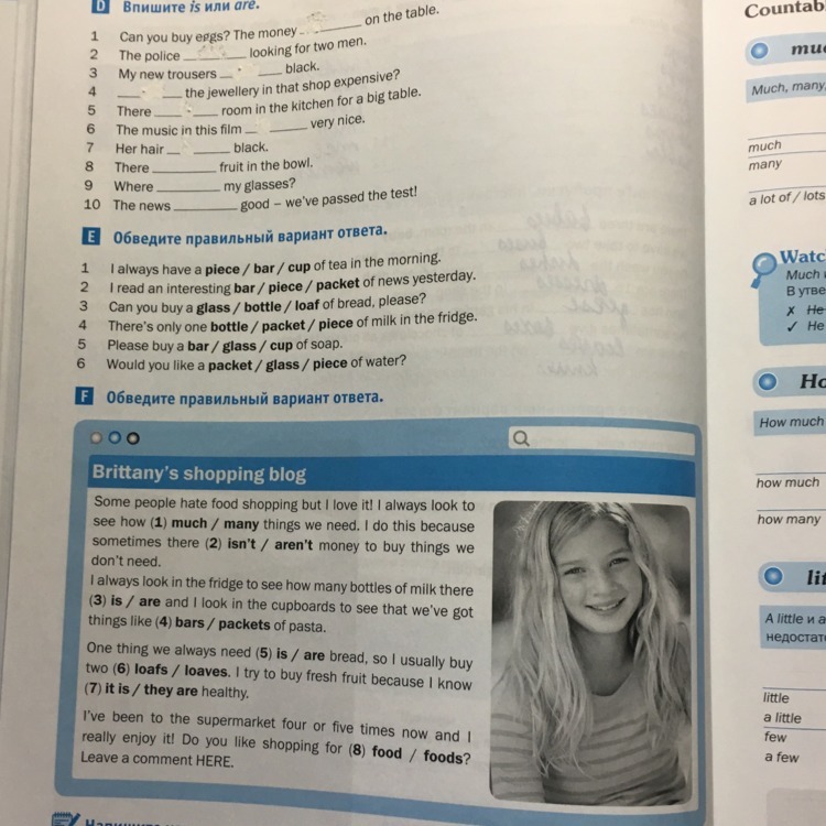 в упражнении Е 2 не piece(кусочек).как ты можешь говорить кусочек новостей.оно употребляется к примеру piece cake(кусочек пирога)