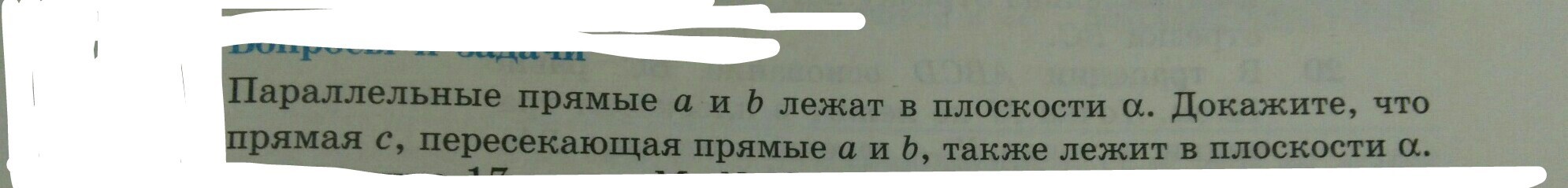 Прямая с пересекает а и b, значит имеет с ними общие точки, которые лежат в плоскости альфа. Если 2 точки любой прямой лежат в плоскости, то и вся прямая лежит в этой плоскости, ч.т.д.
