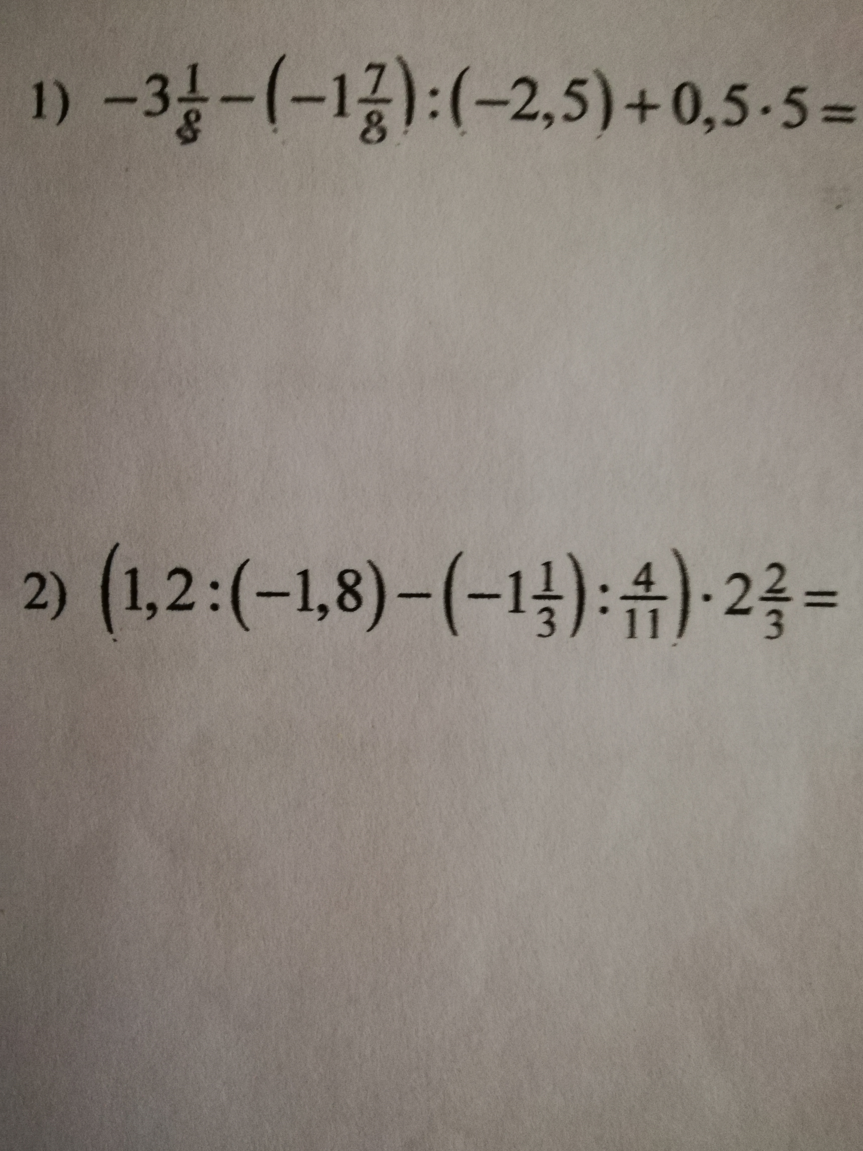 1) -3 1/8 - (-1 7/8/) ÷ (-2,5) + 0,5 · 5