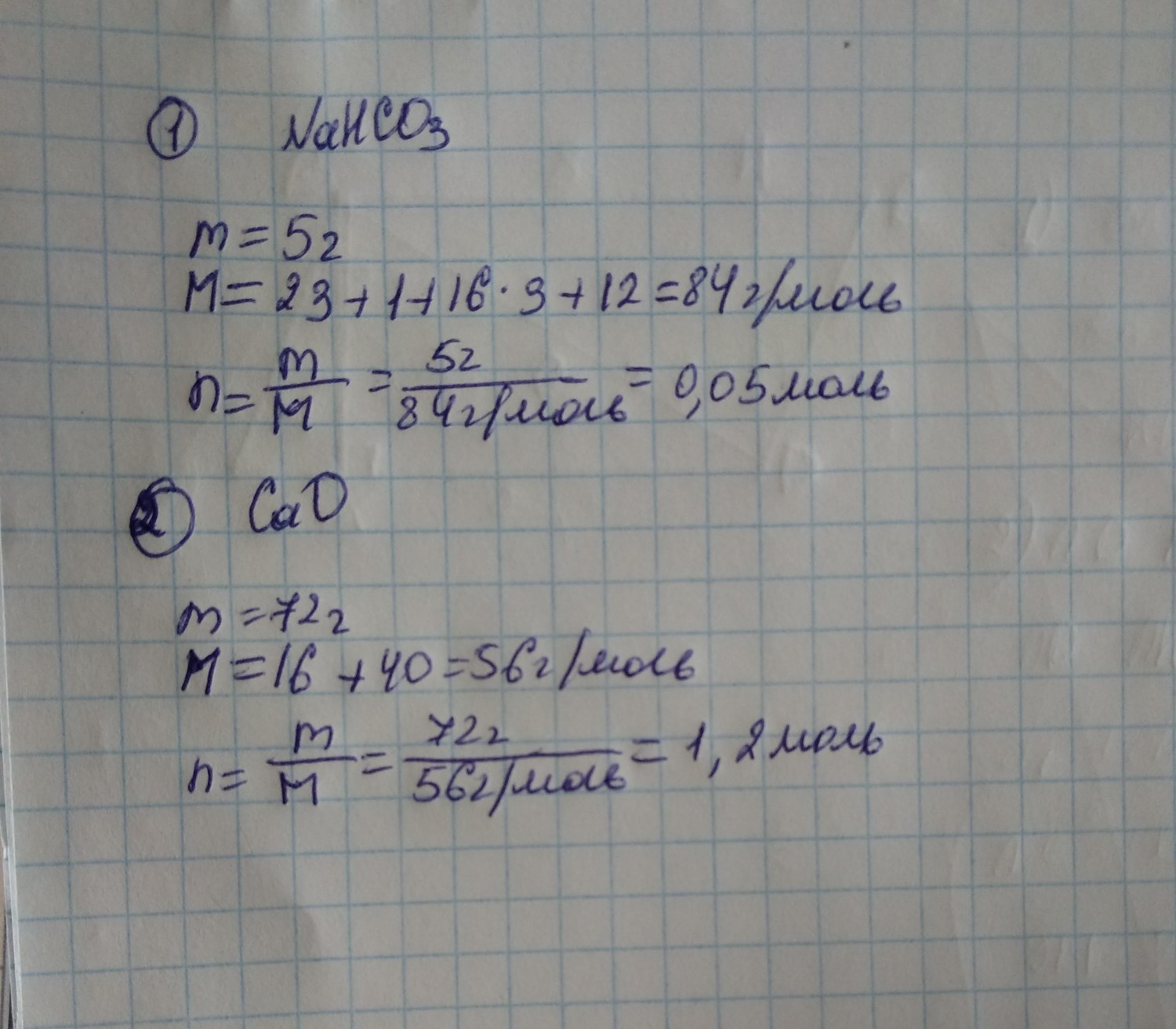 1.Какое количество вещества содержится в 5г пищевой соды NaHCO3?