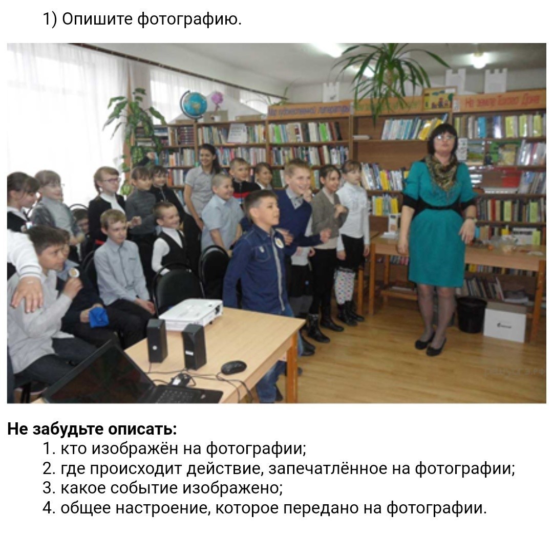 На данной фотографии изображены дети и учительница, скорее всего библиотекарь. Само действие происходит в школьной библиотеке. Скорее всего, в данный момент проходит какое-либо книжное мероприятие для учеников. Сама фотография не передаёт приятных впечатлений, дети на ней не относятся серьезно к этому, не слушают учителя, о чём-то говорят или смеются. Становится жаль учителя, ведь она ничего поделать с этим не может.