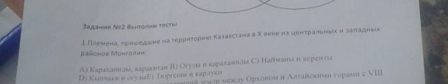 Племена, пришедшие на территорию Казахстана в X веке из центральных и западных районов Монголии: