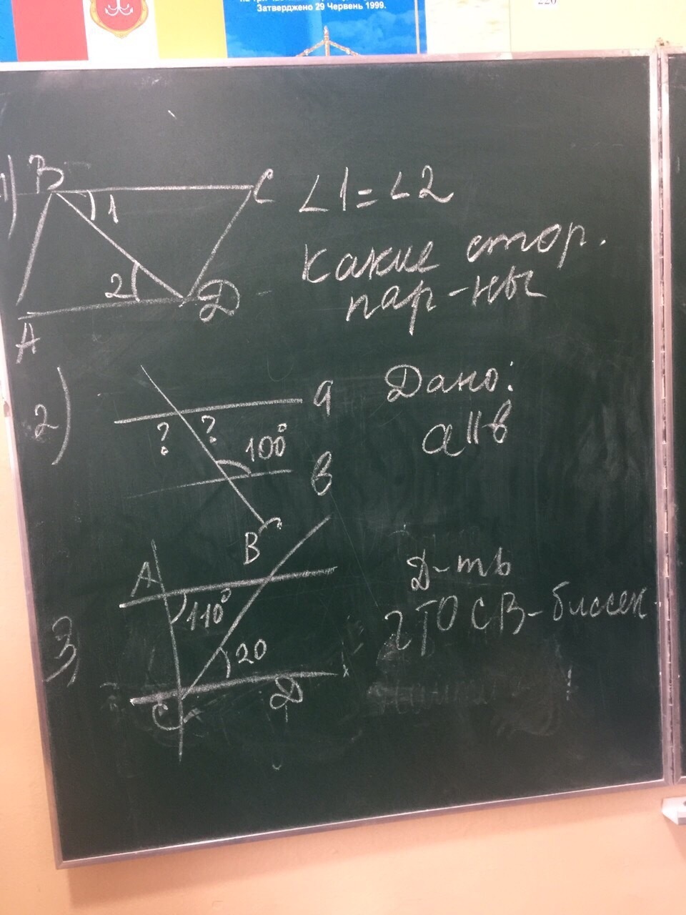 далее угол который равен 100 градусам он накрест лежащий с углом который нам неизвестен( второй вопросительный знак слева), значит он равен 100 градусам,