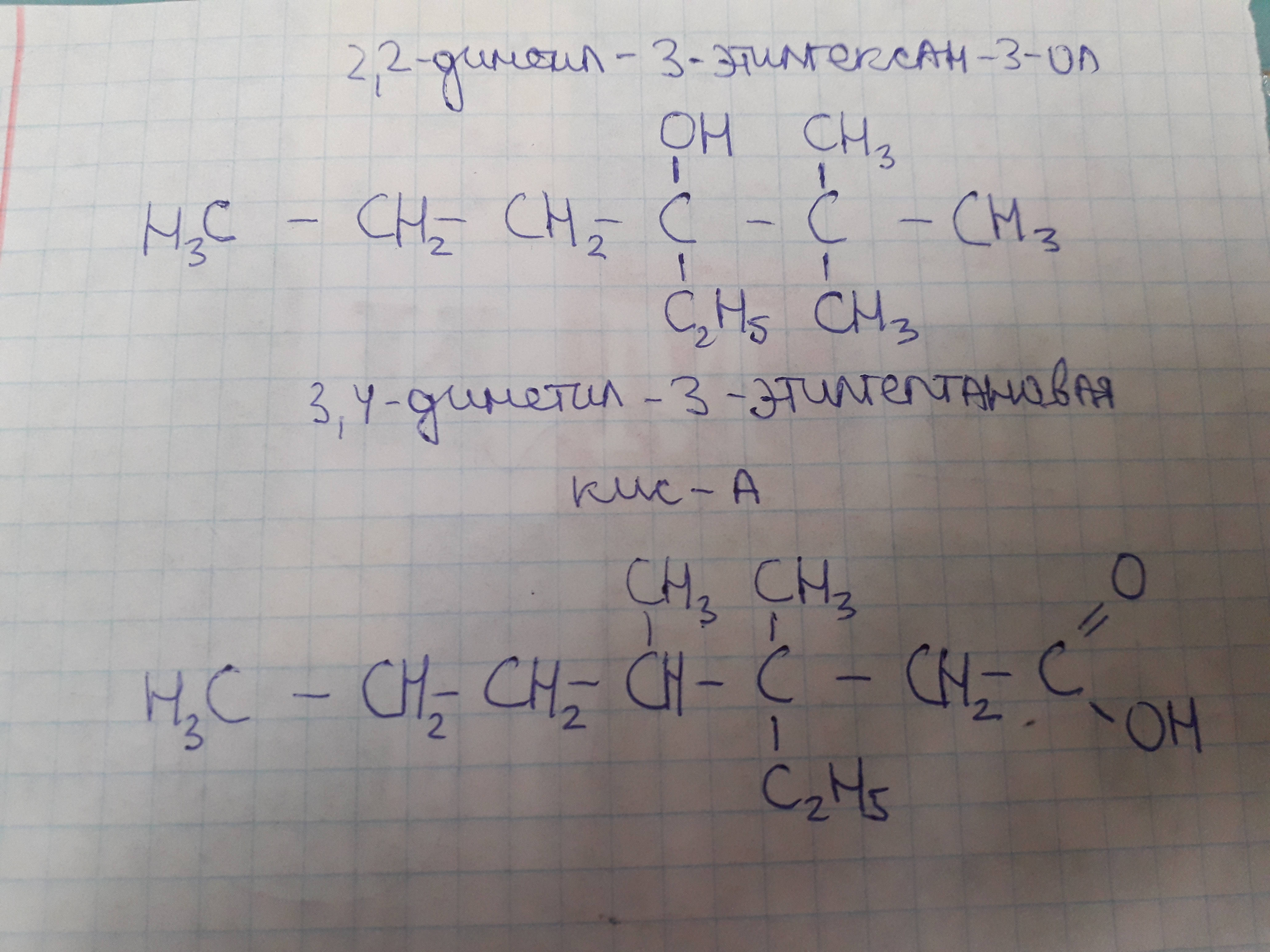 Написать структурные формулы: А)2,2-диметил-3-етилгксан-3-ол Б)3,4-диметил-3-етилгептанова кислота Даю 25 балов