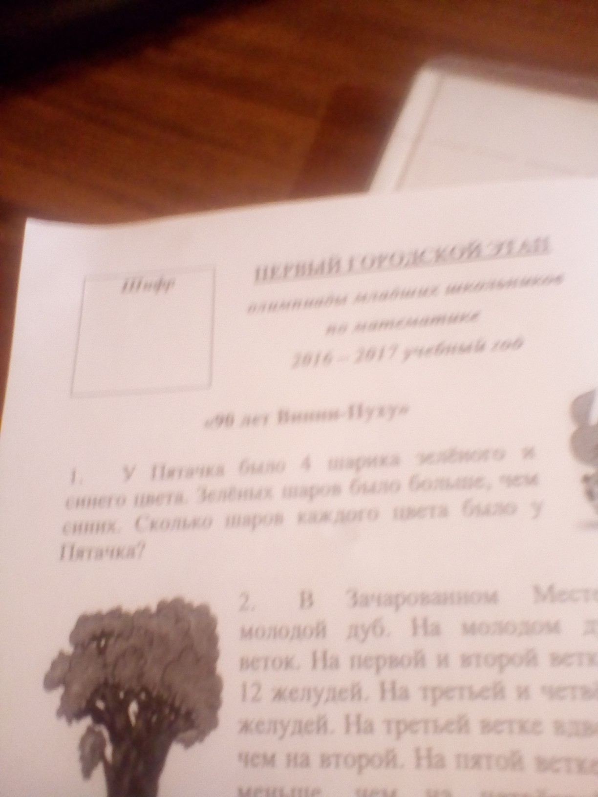 Если бы у Пятачка было бы 2 зелёных и 2 синих шарика, то зелёных было бы столько же, сколько и синих, а по условию зелёных больше, значит у Пятачка 1 синий и 3 зелёных шарика.
