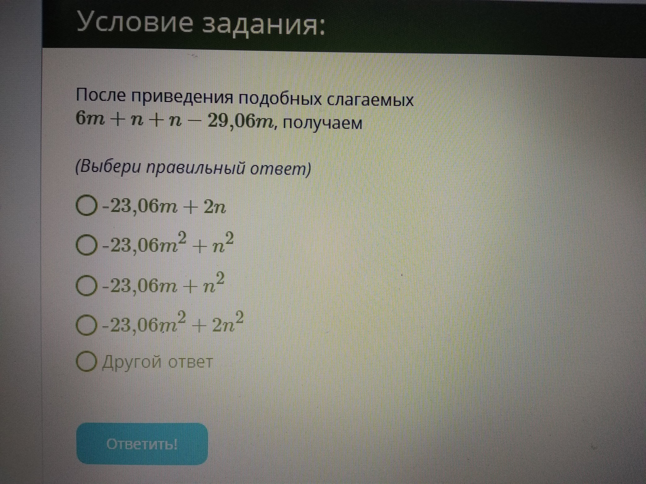 Ответ: 1 верно -23,06m+2n