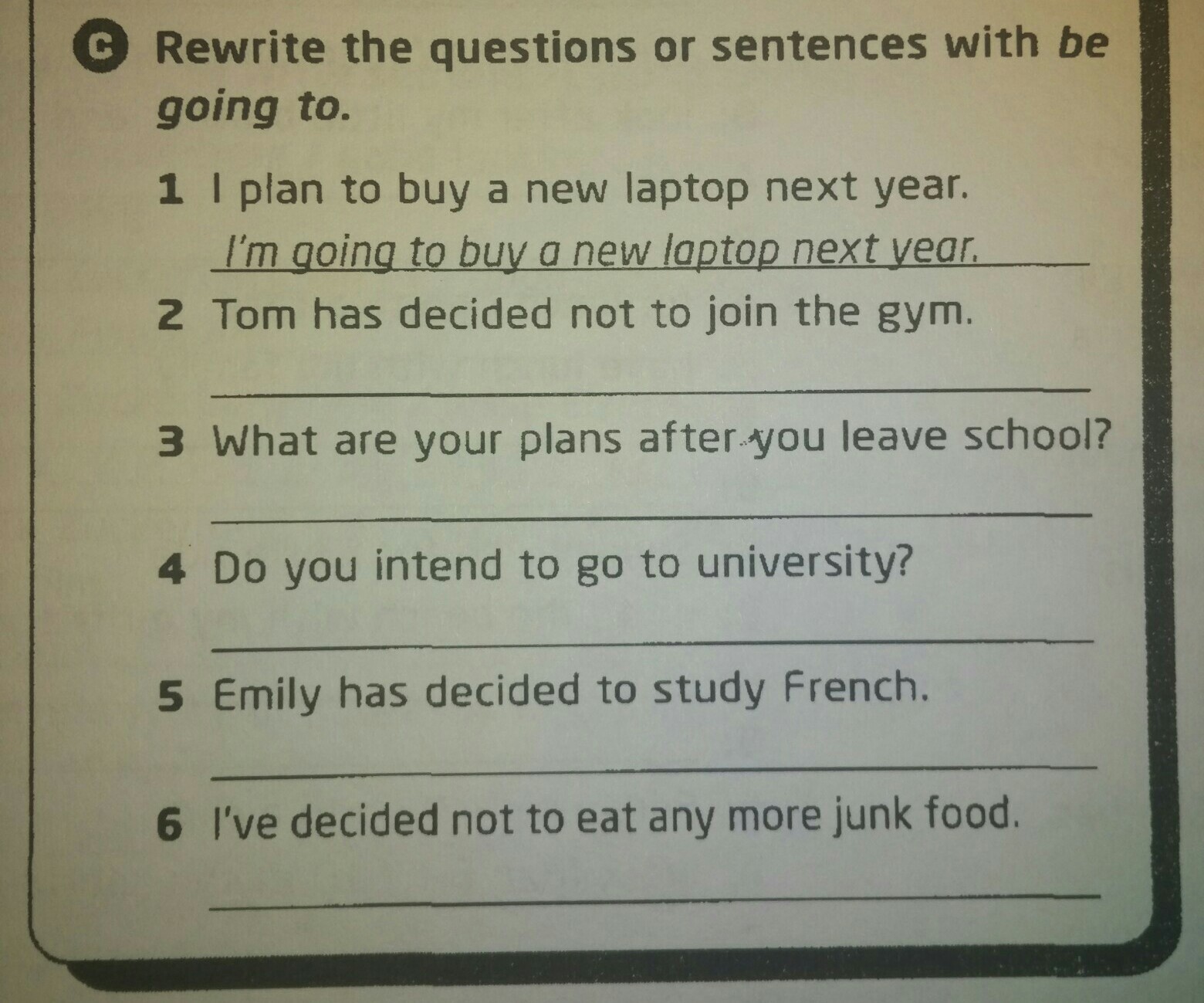 2) tom is going to not to join the gym