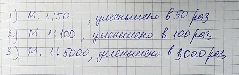 Определить, во сколько раз уменьшено расстояние на планах, построенных в масштабе 1:50, 1:100,1:5000
