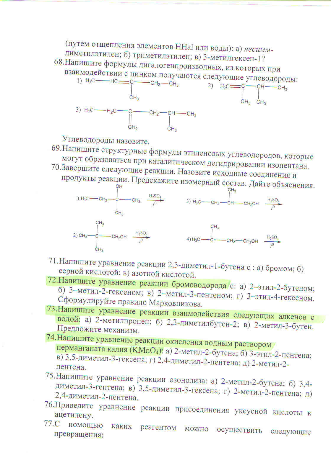 в) CH₃-CH(CH₃)-CH=CH-CH₃ + HBr → CH₃-CH(CH₃)-CH₂-CHBr-CH₃
