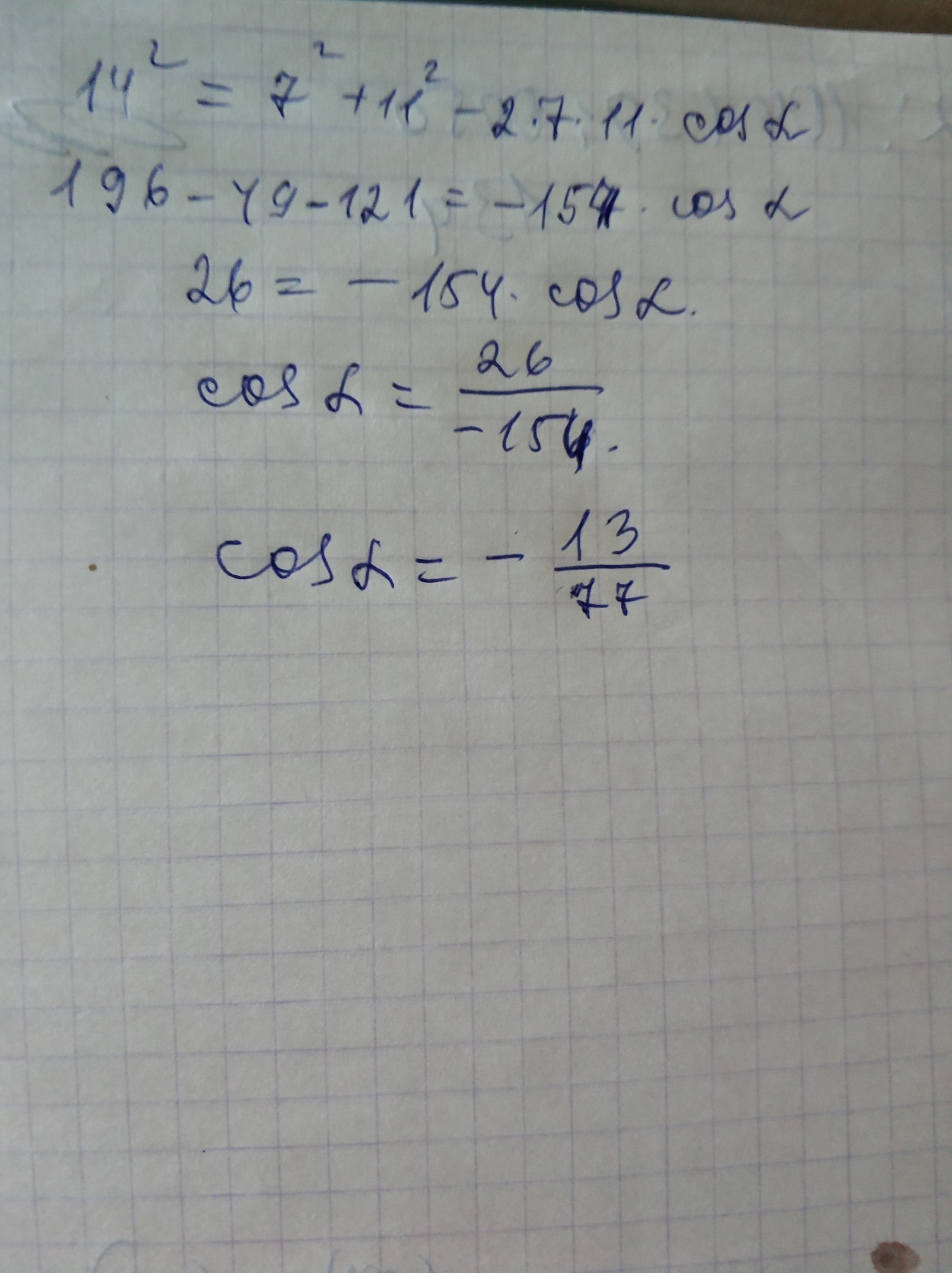 по теореме косинусов.
