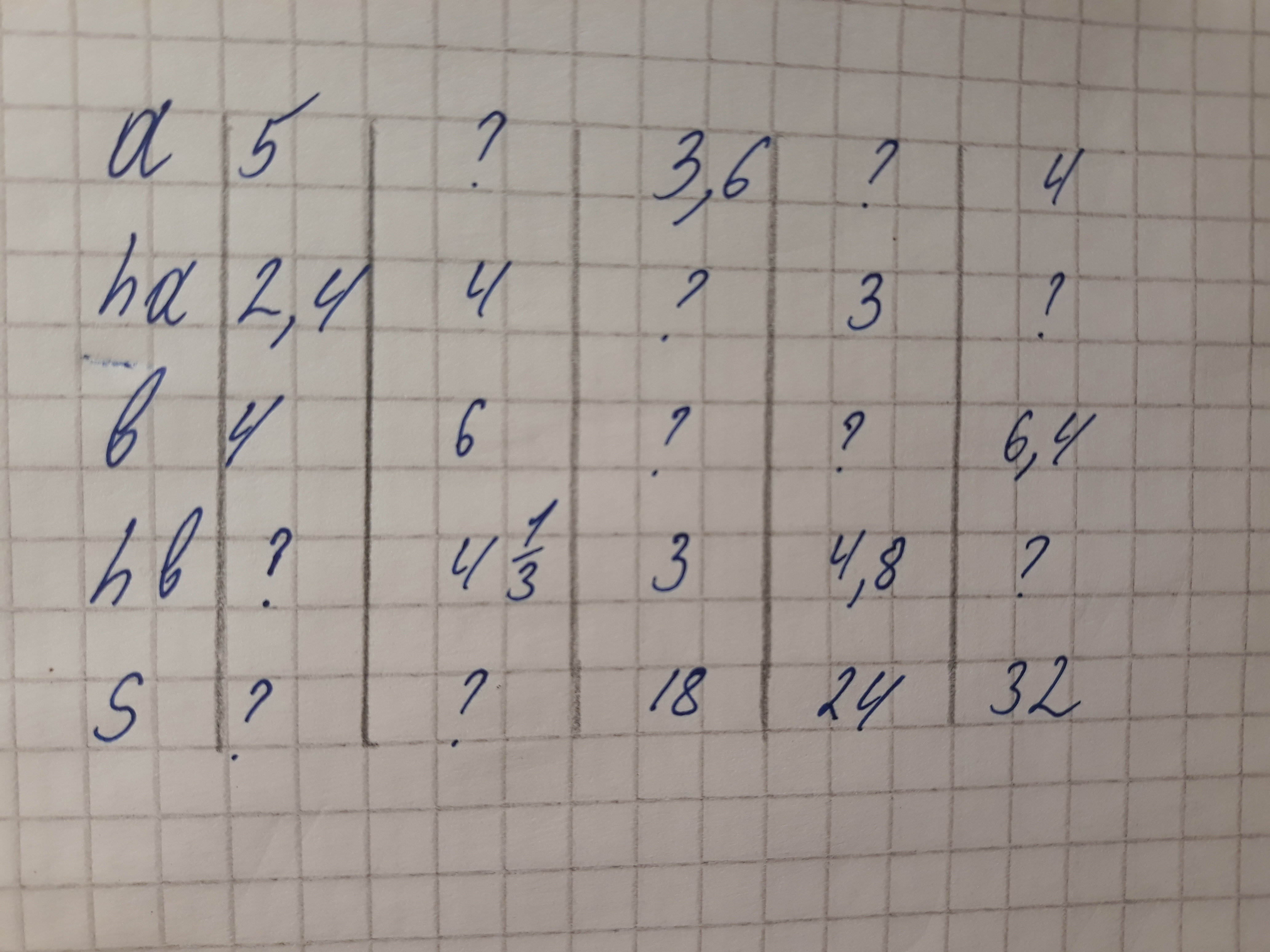 Заполните таблицу для фигуры параллелограмма