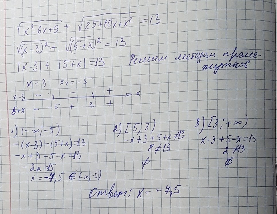 Т.е, правильно будет: х=-7,5, и х(пренадлежит)-(-5;3)