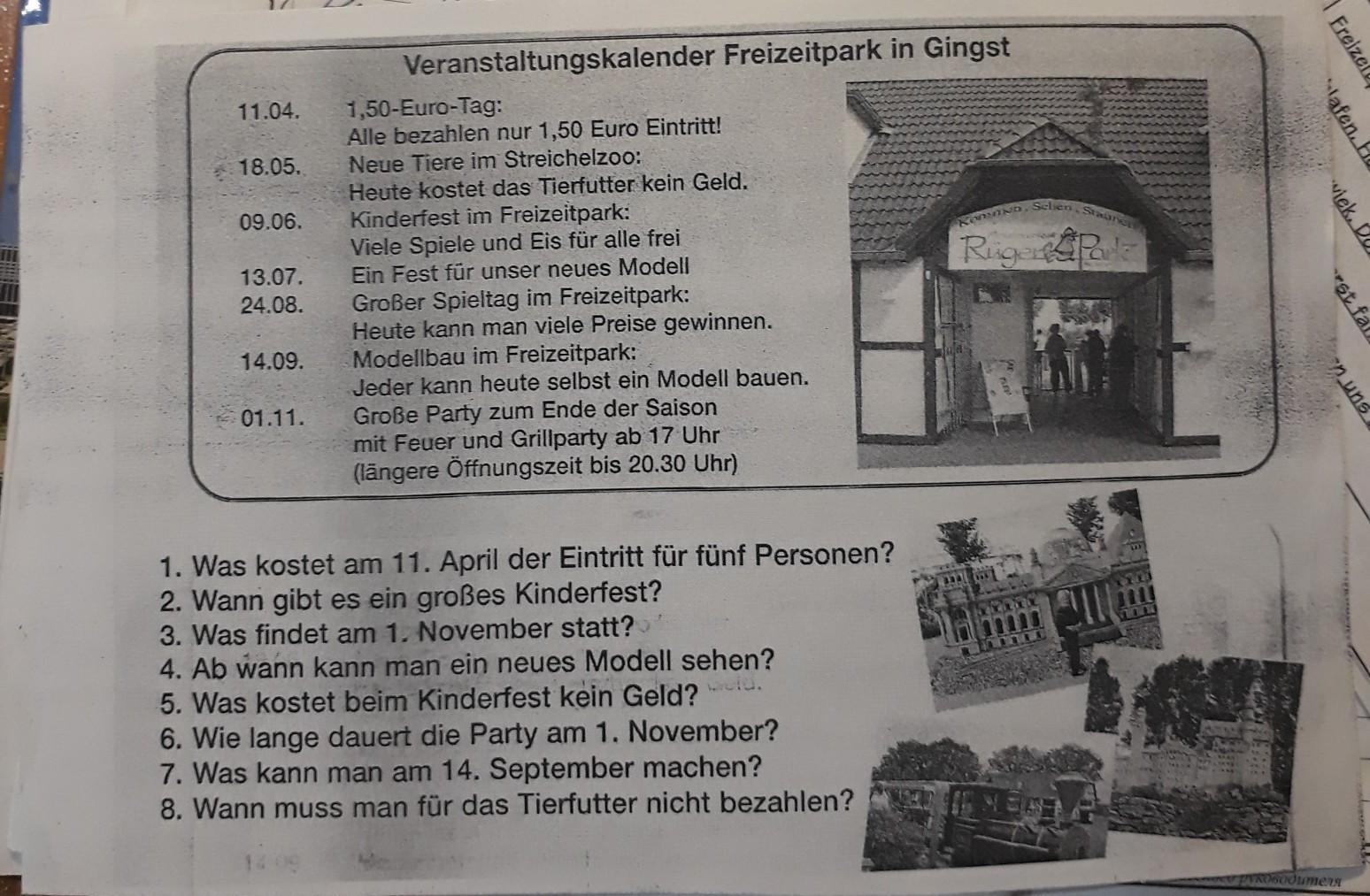 8. Am 18. Mai muss man für das Tierfutter nicht bezahlen.