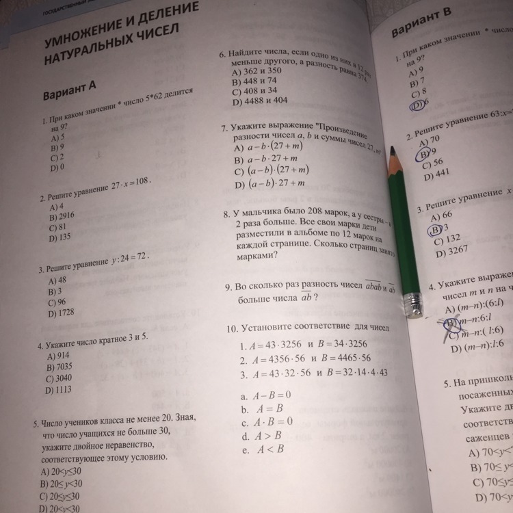 2) 27*х=108, х=108/27, х=4, вариант а)