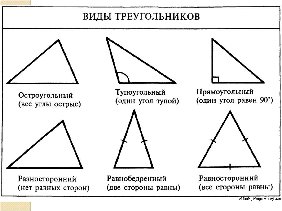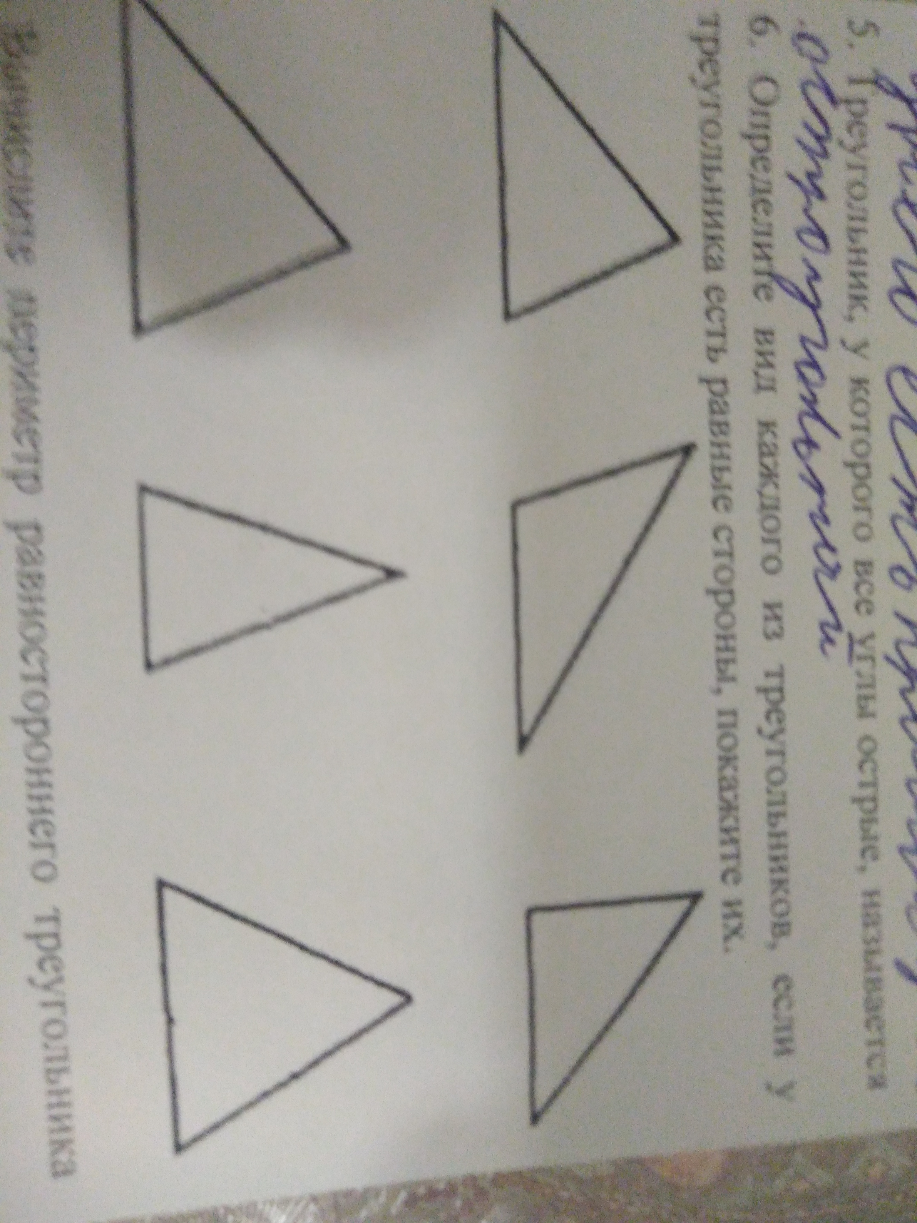 Определите вид каждого из треугольников, если у треугольника есть равные стороны, покажите их